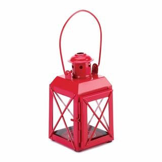 This charming railroad-style candle lantern features a large handle and hinged door. Brighten your living space, indoors or outdoors, with a pop of vibrant red and the shimmering shine of candlelight.