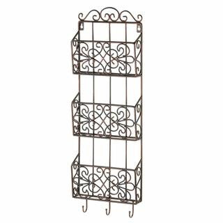 Organize your mail, magazines and more with this gorgeous decorative wall rack. It features three pretty bins for your important papers, and below three hooks await your car keys, light accessories and more.